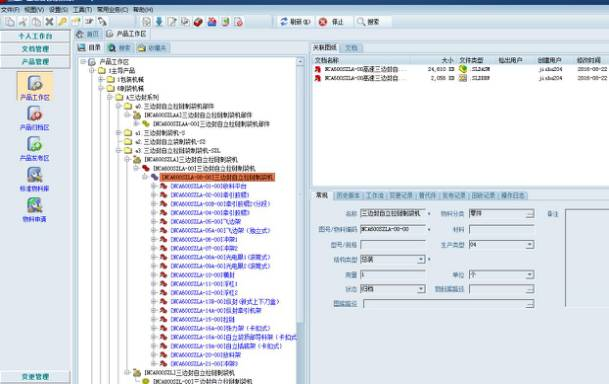 三品PDM系統(tǒng)通過以產(chǎn)品結(jié)構(gòu)樹為核心的產(chǎn)品數(shù)據(jù)模型,將產(chǎn)品零部件的裝配層級(jí)關(guān)系、借用關(guān)系、零部件裝配數(shù)量等屬性信息嚴(yán)格管理起來,同時(shí),在產(chǎn)品結(jié)構(gòu)樹中將各級(jí)零部件相關(guān)的二三維圖紙等技術(shù)文檔進(jìn)行關(guān)聯(lián)管理,方便工程師快速查找、借用。