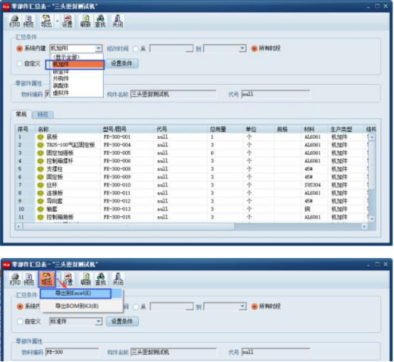 而各類BOM清單則通過產(chǎn)品的裝配結(jié)構(gòu)依據(jù)匯總條件快速匯總與輸出(Excel電子表格):