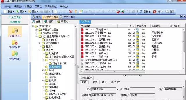 文檔管理分為創建和查詢兩種模式。創建文檔時,按照項目名稱來建立各個項目的一級目錄和各級子目錄;創建產品時,按照產品類型分類存放。查詢產品則根據分類庫進行。如在查找樓宇裝備時,僅需查詢樓宇裝備庫,即可查看到所有項目的樓宇裝備設備圖紙;在查找標準吊籃時,即可查看所有不同標準的吊籃設備圖紙,方便查詢和對比。