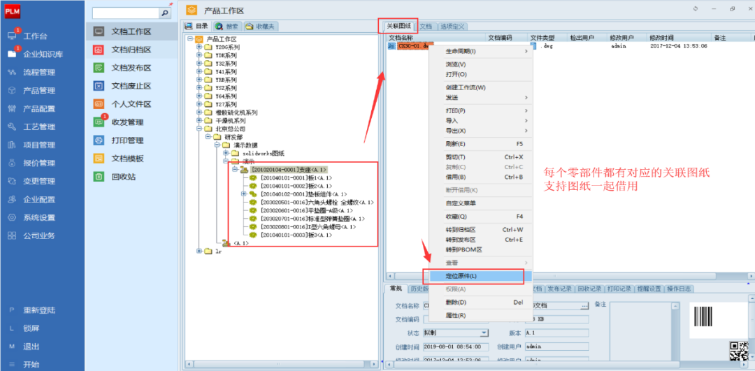 產品、零部件等物料管理與文檔相關聯
