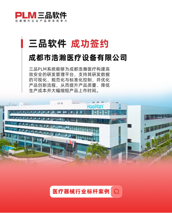 三品PLM系統能夠為成都浩瀚醫療構建高效安全的研發管理平臺,支持其研發數據的可視化、規范化與標準化控制,并優化產品創新流程,從而提升產品質量、降低生產成本并大幅縮短產品上市時間。此次簽約三品PLM系統,預計將助力成都市浩瀚醫療設備有限公司進一步優化研發管理流程,加強產品數據的集中管理與協同效率。