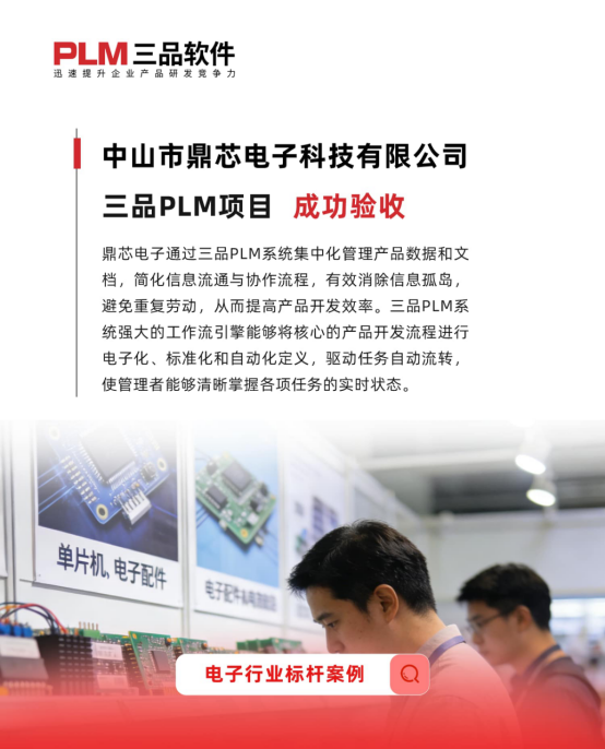 借助三品PLM平臺,鼎芯電子能夠系統化地管理產品研發流程,提升跨部門協作效率,確保設計變更的準確傳遞與執行。三品PLM平臺不僅支持其智能家電系統、電子專用材料等現有業務的穩健發展,更能為集成電路設計、芯片制造等新興戰略領域提供堅實的研發管理底座,助力公司實現技術突破與業務升級,在激烈的市場競爭中構建起核心的研發創新管理體系。