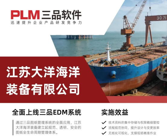 通過在線審批流程與版本管理功能,杜絕了圖紙誤用風險;可視化瀏覽與無紙化發布進一步支持了車間現場的高效作業,為“殼舾涂一體化”制造模式提供了堅實的數字化基礎。通過三品圖紙管理系統的全面應用,江蘇大洋海洋裝備建立起規范、透明、安全的圖紙全生命周期管理體系。