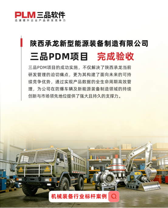 此次三品PDM系統(tǒng)的成功應(yīng)用,有力支撐了陜西承龍在高端裝備制造領(lǐng)域的數(shù)字化升級與智能化轉(zhuǎn)型,為其高質(zhì)量發(fā)展注入了數(shù)字化動力。