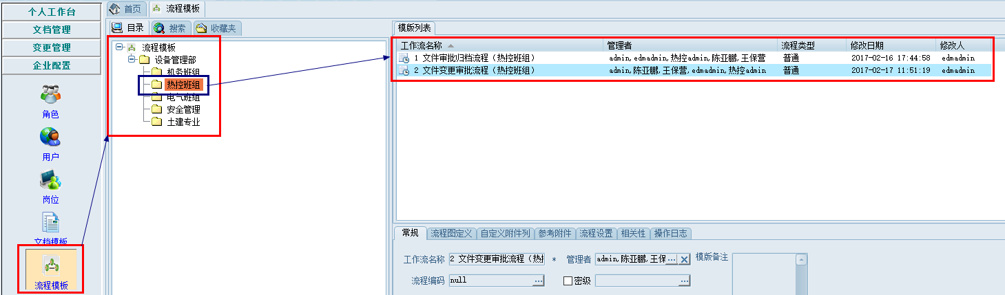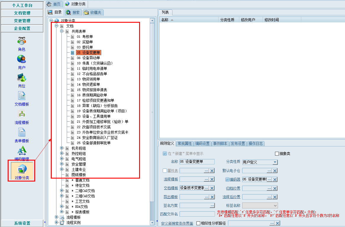結合企業規范化、標準化管理要求, 在EDM系統內定制了各類文件模板,并建立相應模板及對象分類,便捷地創建各類規范的文件資料,同時也方便檢索。