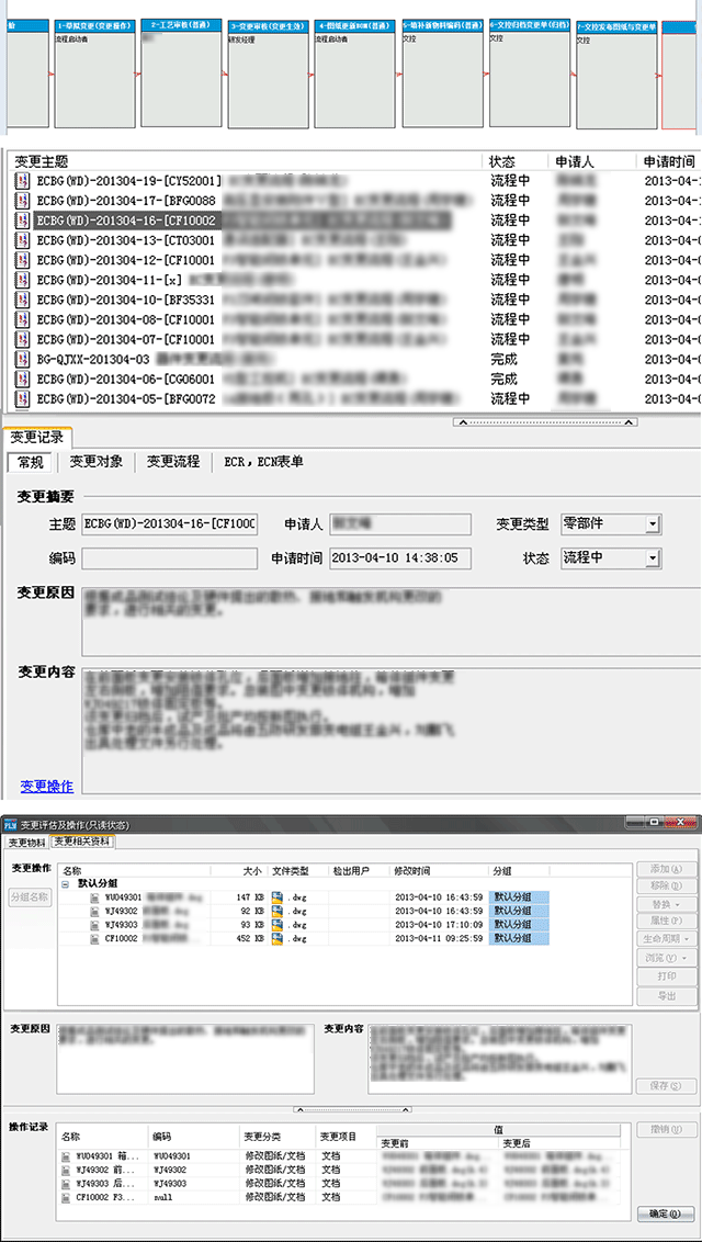 3、規范產品變更過程,理清變更零部件和物料在多個產品中的借用關系,保證變更數據不遺漏,保證相關人員按變更單據要求落實變更。