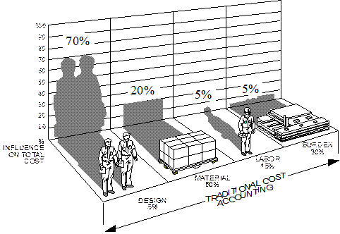 產品80%以上的成本是在設計階段決定的,因此在產品設計階段降低成本的空間也大。