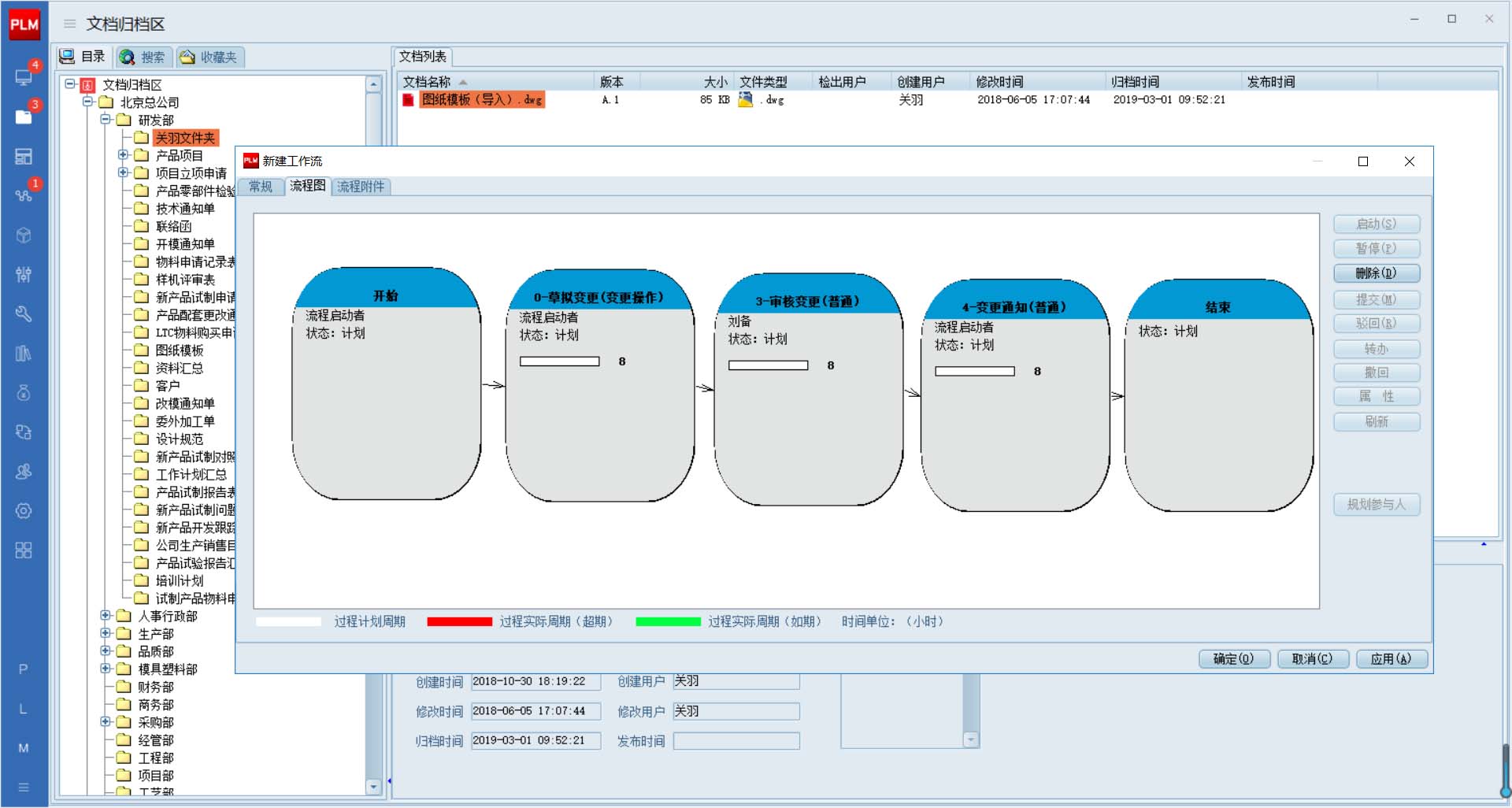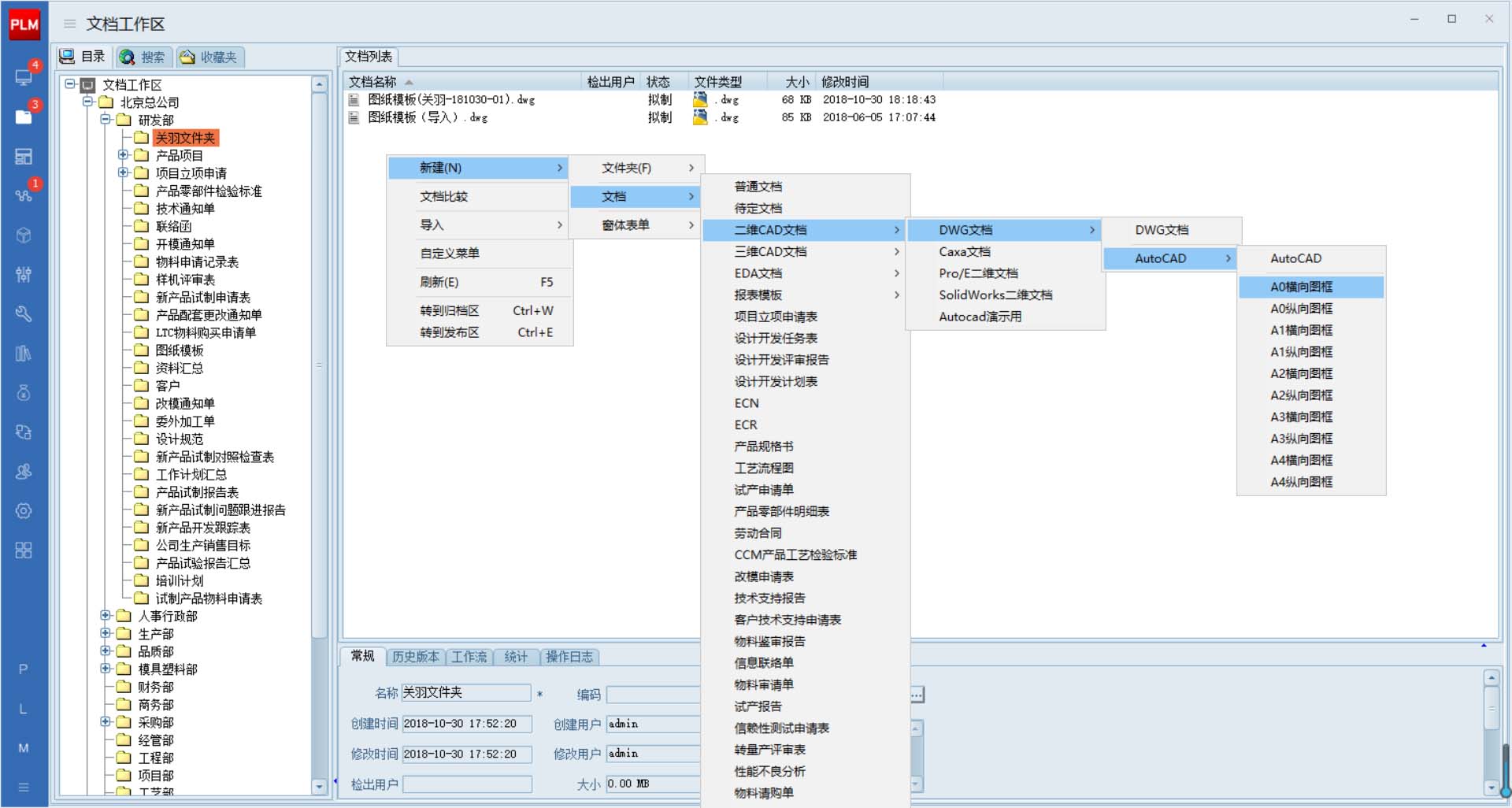 第四步:文件模板調用成功后,下步通過文件的全生命周期管理功能,展開對該文件的編輯、版本管理、歸檔、發布、變更、廢止等操作,大家每天都在談如何落地執行ISO文控管理規范,那么,通過三品PDM系統里的文檔工作區的“全命周期管理”,可以完整的把文件的整個使用過程有效的記錄及查詢。