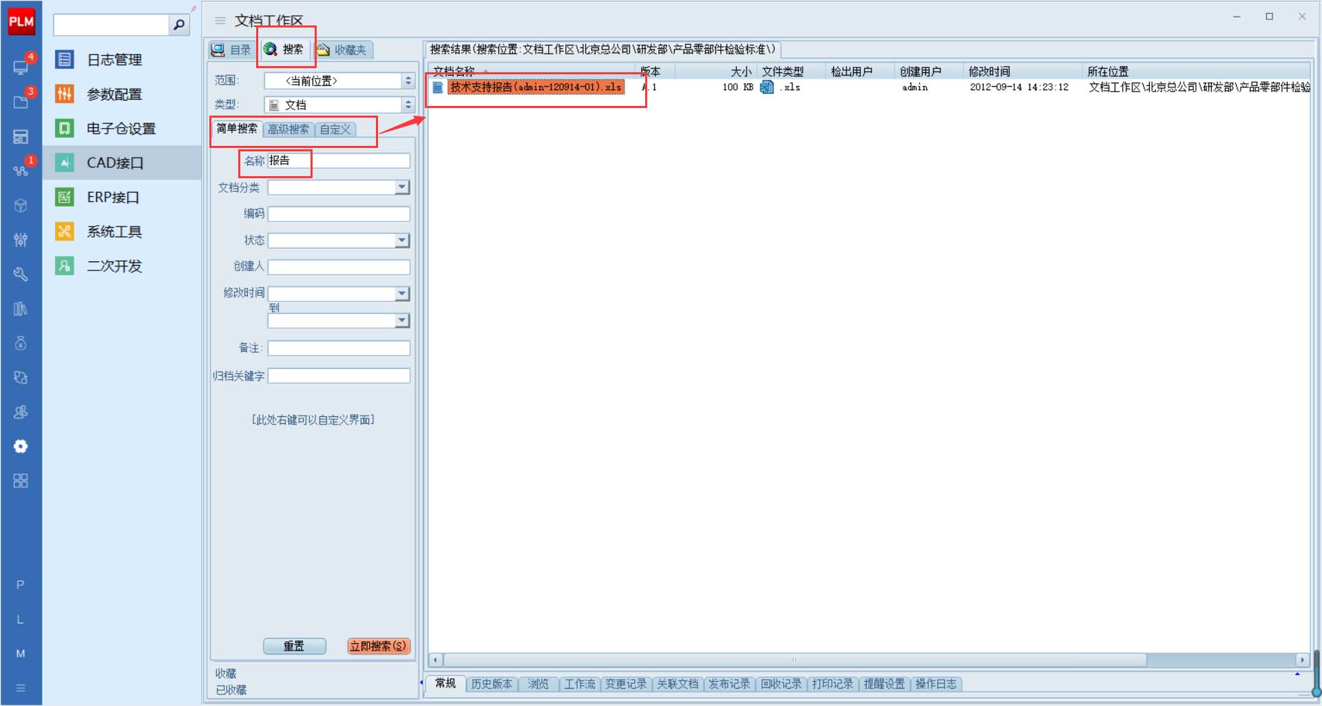 第五步:如何實現文件的快速檢索加以重用?三品PDM系統支持全局及局部搜索,支持模糊或精確搜索,支持條件組合搜索等: