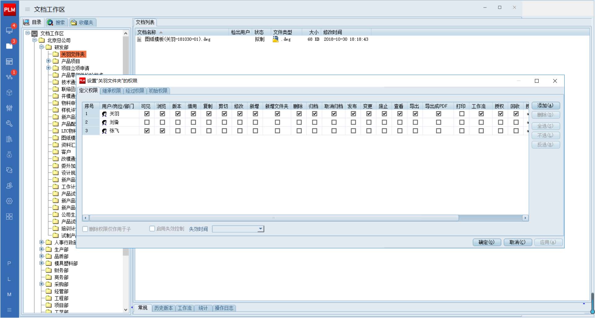 第三步:如何確保各部門或文件夾的相對安全?在PDM系統設置文件操作的權限: