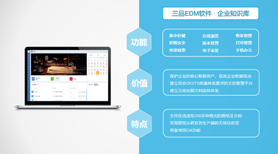 ②實現研發業務電子化、無紙化管理,減少跑腿簽字、開會以及企業業務管理過程中常見的“兩層皮”現象,通過 EDM 模塊業務流程的功能驅動、安全預警、及時提醒,在整體提升業務效率的同時,進一步加強公司部門業務流程執行力和管理能力。