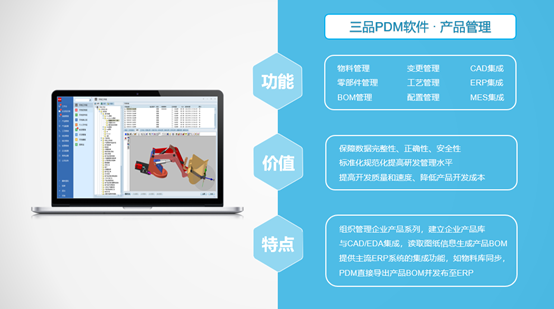 ①通過三品PLM系統進行BOM管理,實現對于BOM包含BOM 生成、提取、同步在內的全生命周期的閉環管理,可減少現有模式下BOM管理的大量重復性工作,提高工藝BOM、設計BOM 管理效果和BOM數據的準確性、及時性,并促成公司形成結構化、系統化的產品數據庫;