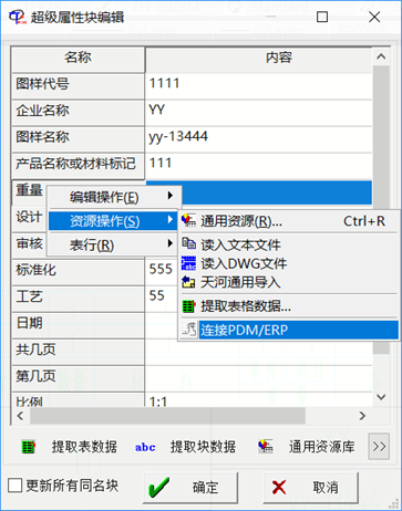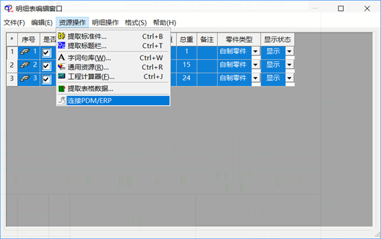 選中所有行,選擇資源操作連接PDM/ERP”: