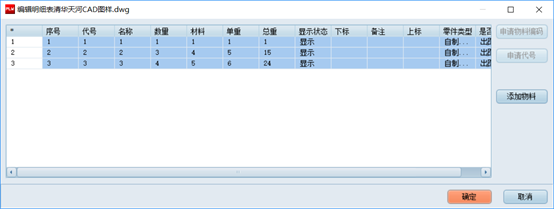 點擊“添加物料”從PDM中選擇物料添加到此明細表中: