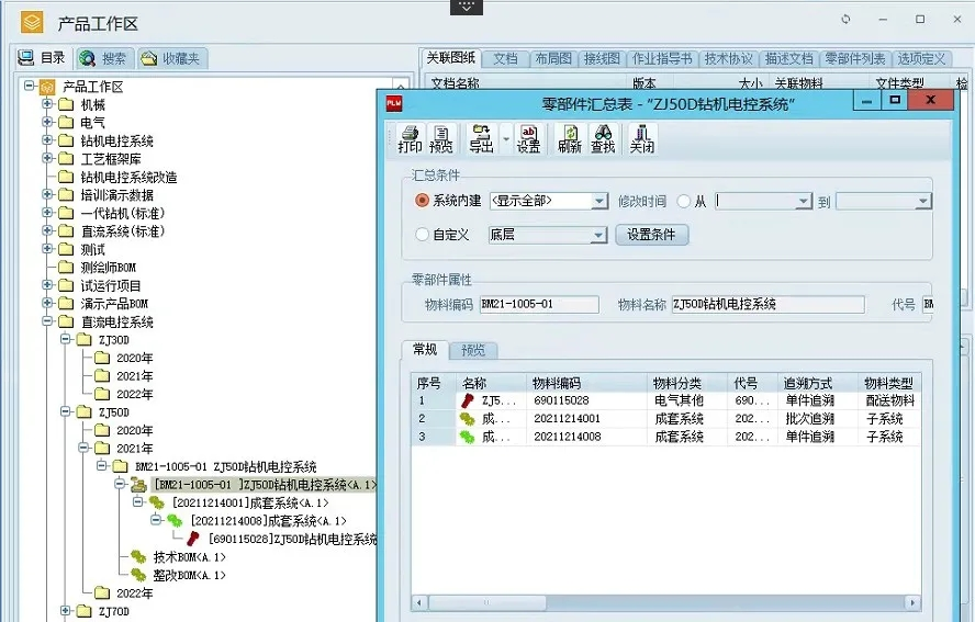 3.4 利用PLM快速準(zhǔn)確匯總各類BOM表,提升企業(yè)內(nèi)部或與ERPMES系統(tǒng)之間的協(xié)作水平