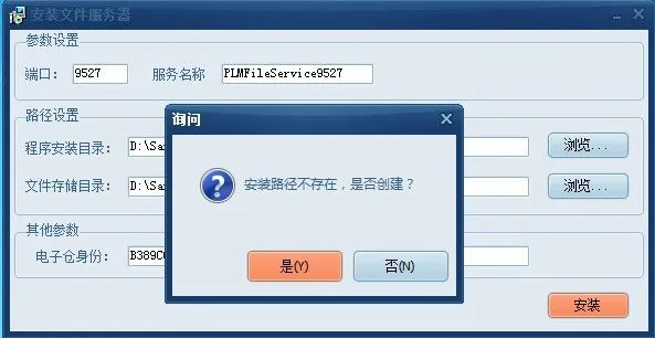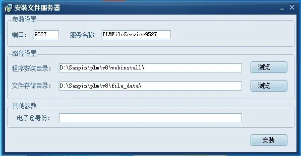 (2)端口和服務名稱應用默認設置,選擇程序安裝路徑、文件存儲目錄和電子倉身份。