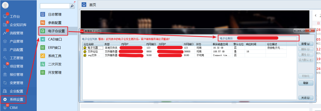 電子倉身份請登錄PLM在“系統設置”—“電子倉設置”中獲取。