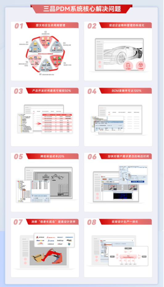 1. 提高研發效率:PDM系統通過集中管理產品數據,減少了數據查找和整理的時間,提高了研發效率。同時,系統還支持并行工程和協同工作,進一步縮短了產品研發周期。