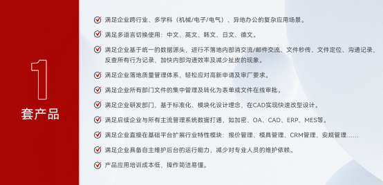 MES集成 權限管理 CAD集成 版本對比 ERP集成 版本管理 CAD圖紙管理 編碼管理 模具管理 項目管理 車間看板 圖紙管理 PLM系統 BOM管理 PDM系統 產品數據管理 產品生命周期管理 圖紙管理系統 可視化瀏覽 汽車制造解決方案 機械設備PLM解決方案 化工行業PLM解決方案