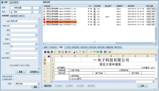 PLM系統(tǒng)檢索功能:三品PLM系統(tǒng)提供直觀的搜索功能。簡(jiǎn)單搜索支持按名稱、編碼、狀態(tài)、創(chuàng)建人等基本屬性快速篩選;高級(jí)搜索允許用戶自定義并組合多個(gè)文檔屬性條件進(jìn)行精確查詢。