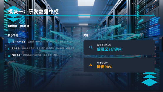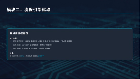 ●量化成果:設(shè)計數(shù)據(jù)查找時間減少70%,版本錯誤率降低90%,設(shè)計復(fù)用率提升25%以上。