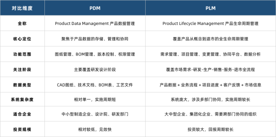PDM和PLM雖然只有一字之差,但內涵和外延卻大不相同。PDM專注于產品數據管理,是企業信息化的基礎建設;PLM關注產品全生命周期協同,是企業戰略管理的升級路徑。