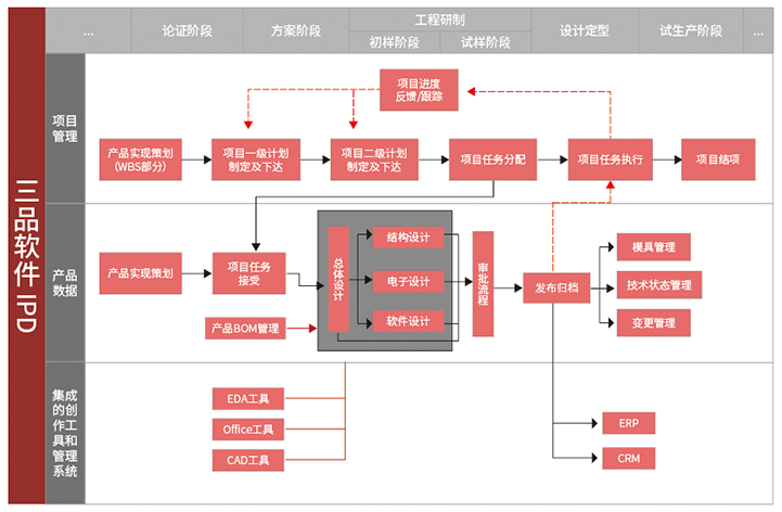 三品PLM有效解決現有企業研制產品技術狀態不穩定以及研制轉批產過程中技術資料不齊套的現象。規范和完善產品研制和質量控制程序文件,并以電子化的方式落實產品研制過程,確保階段文檔交付的齊套性,改善產品技術管理水平。